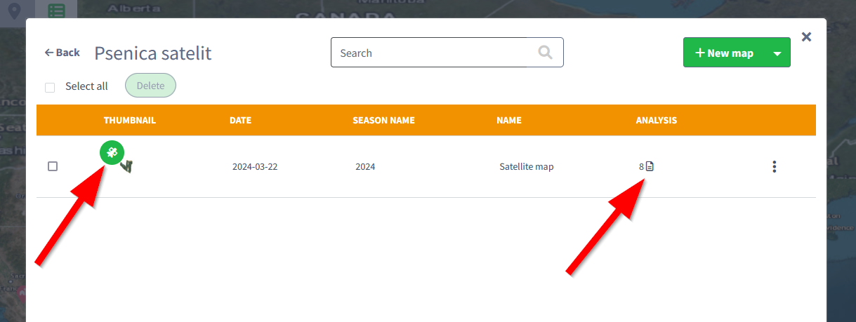 The analysis number in the field list represents the number of generated satellite maps.