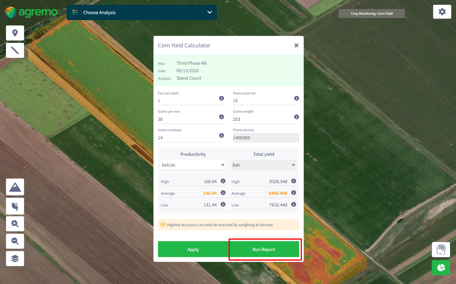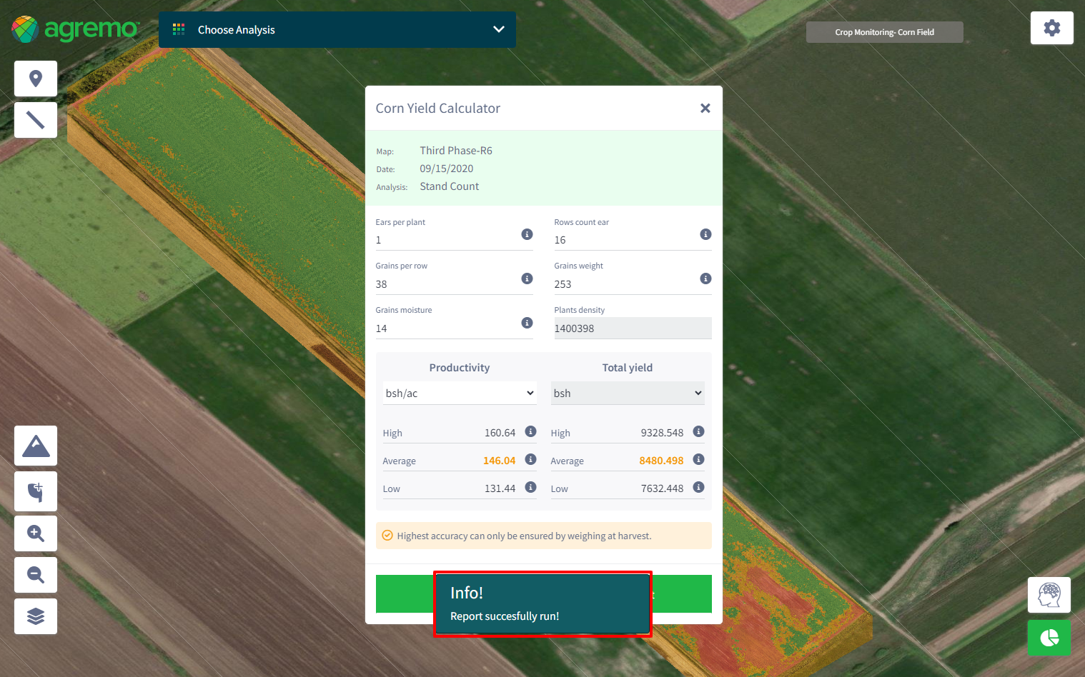 Corn calculator tool is a tool on the Agremo app which allows users to predict yield in corn.