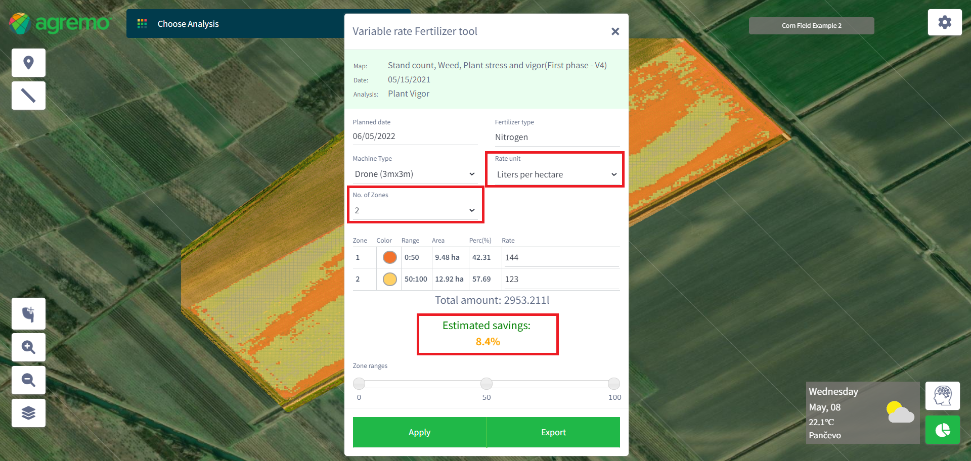 The biggest problems with variable-rate applications are that farmers may not know how to create nutrient response zones on their farms or know how to assign rates to those zones. To solve these problems, Agremo developed a decision-aid tool for creating variable rate prescriptions.