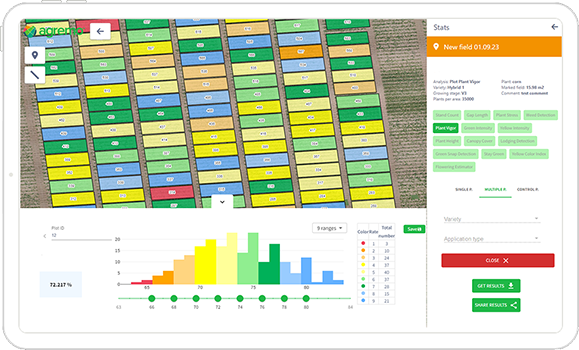 Monitor thousands of micro-plots – No matter what number of field trials you have, our app can analyze them and provide you with accurate and in-depth information of the condition of your crops. Know exactly how your crop protection products are performing!